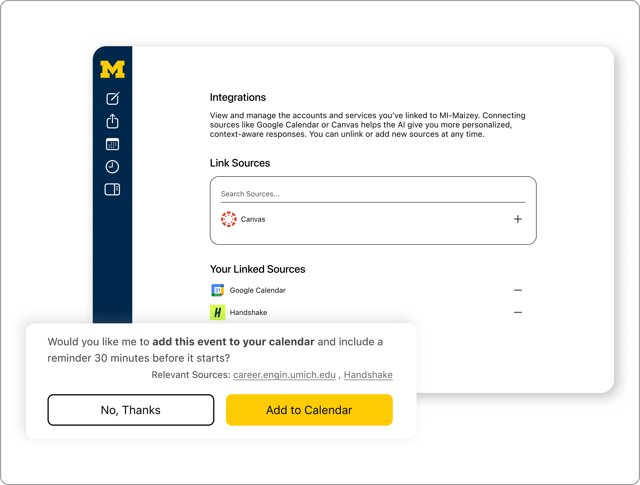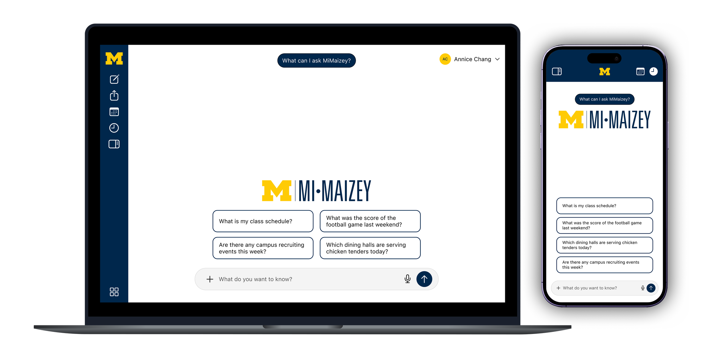 MiMaizey connects with key campus apps to deliver more personalized, context-aware support.