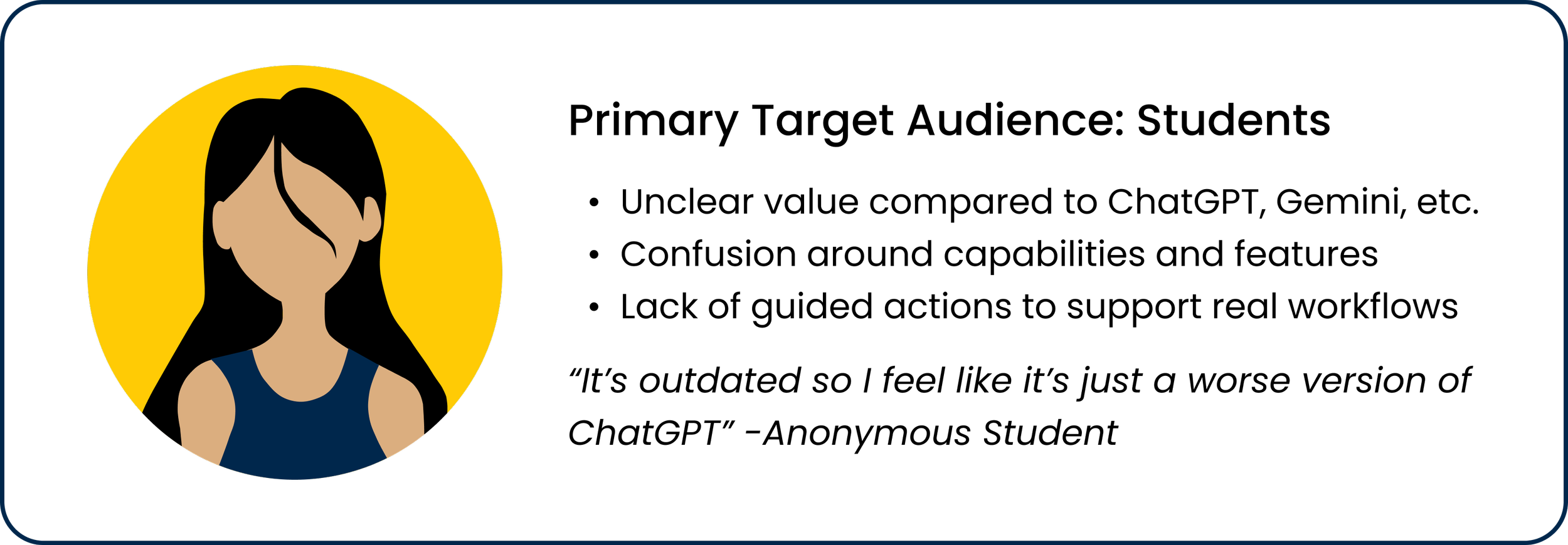Although this project centered primarily on UX Design, I conducted light foundational research to better understand how students currently perceive and use Michigan’s AI tools.