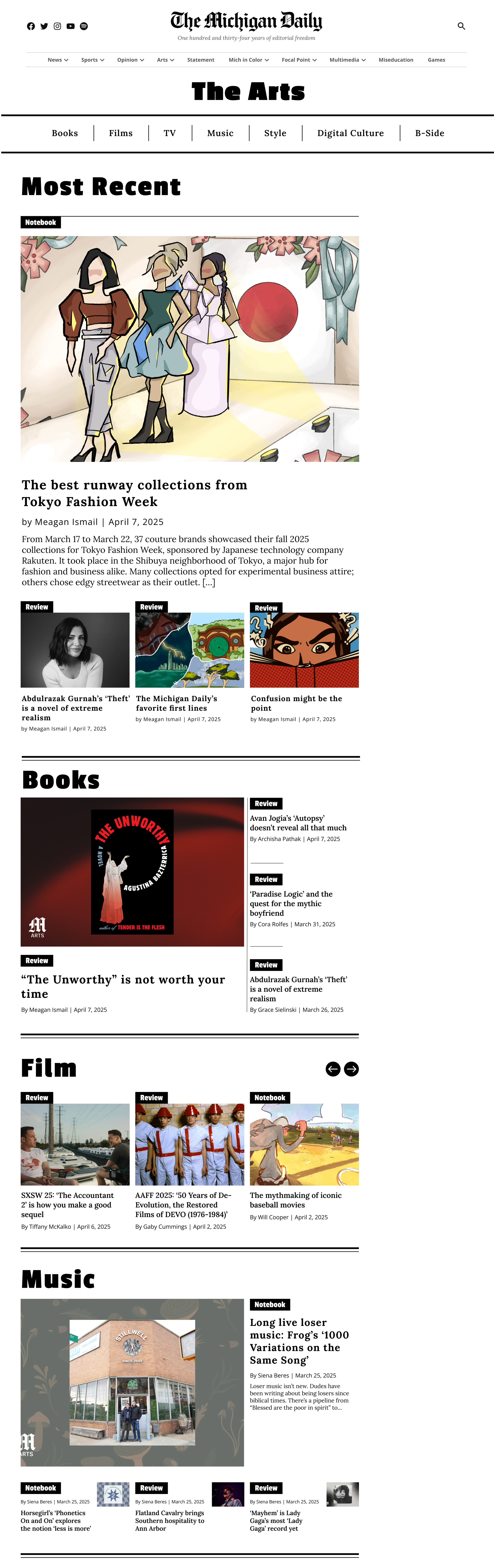 Redesigned the Arts Landing Page of the Daily’s website for both mobile and desktop platforms.